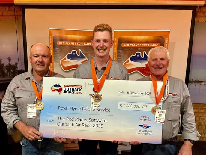 Forbes' flying pharmacist Jack Buckley, Grenfell farmer John Johnson and Cowra farmer Brad Shephard completed the 13-day Outback Air Race from Uluru to Canarvon